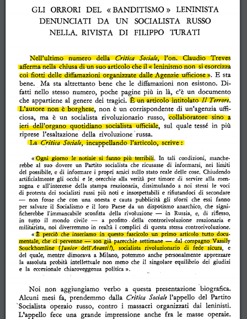 Na última edição da Crítica Social, o Honorável Claudio Treves afirma no encerramento de um de seus artigos que "o leninismo não se exorcizado com o florescimento da difamação organizada por agências não-oficiais". Ótimo. [Porém] na mesma edição, algumas páginas depois, há um documento que pertence ao tipo trágico.